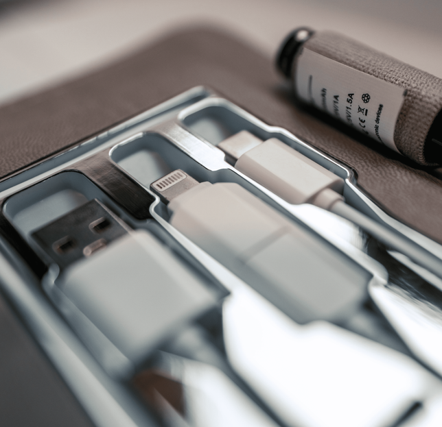 Brezžični in žični polnilec za telefone ali druge elektronske naprave.